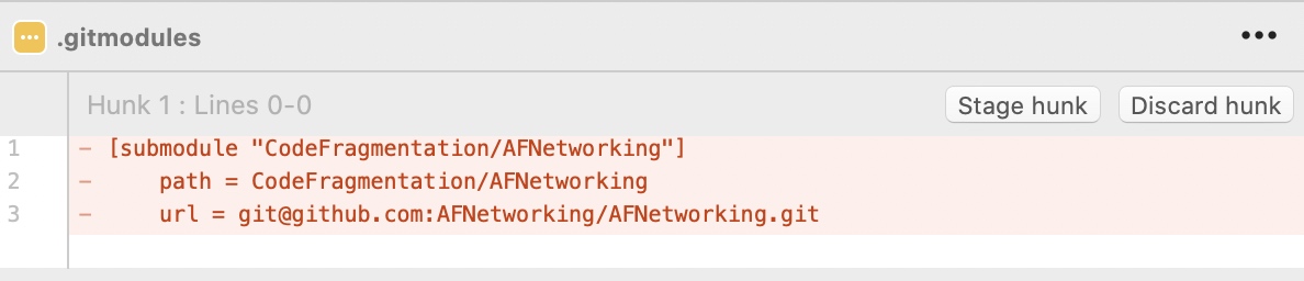 双击左侧菜单 SUMODULES 下我们添加的子仓库,仍以上面 AFNetworking 为例子: